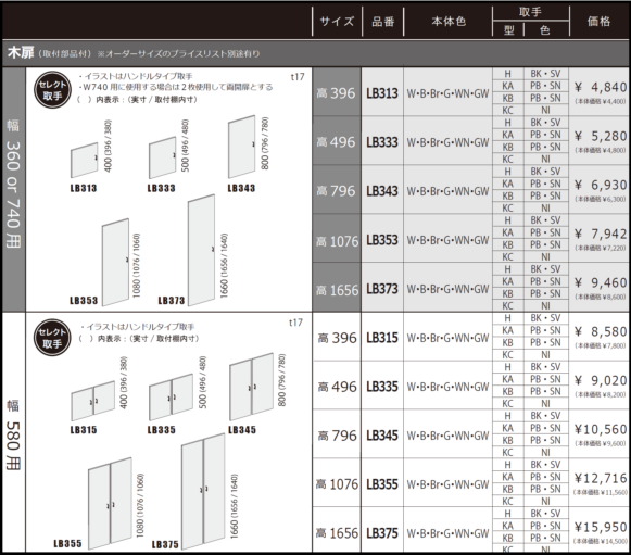 木扉 LB373 幅360/740兼用 高さ内寸1640mm用